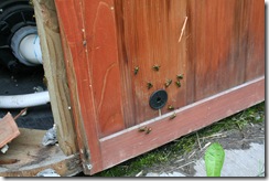 Wasps had apparently made a nest inside, & Warren’s first thought was a bear looking for honey. My reply was, we don’t have honey bees wild in Alaska, so why would a bear think he was going to find honey? I have a friend who raises bees for honey, but they have to be shipped, & can’t survive our winters without someone protecting them. We only have the paper wasps in the wild.